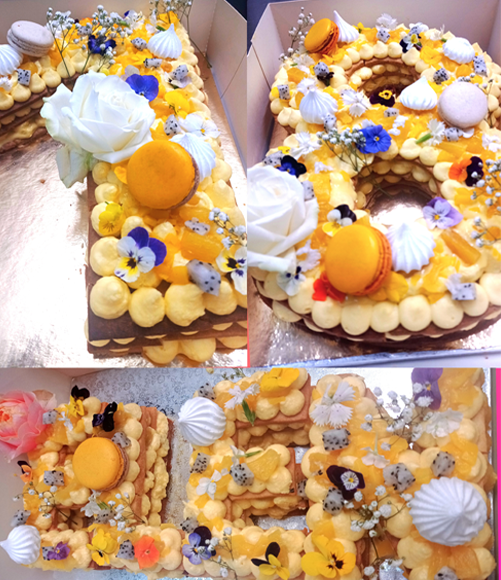 On réalise les Number Cake en forme de chiffres ou de lettres ou de formes. Les parfums sont décidés en concertation avec vous, selon vos goûts et vos attentes mais surtout avec des fruits de saison.